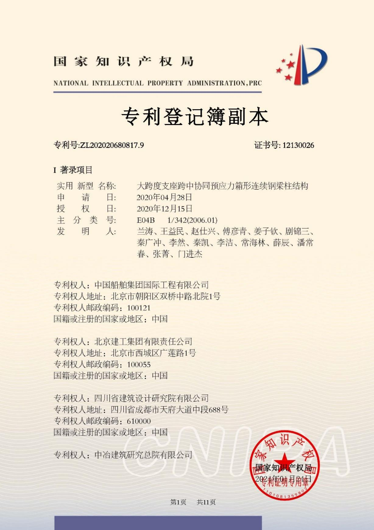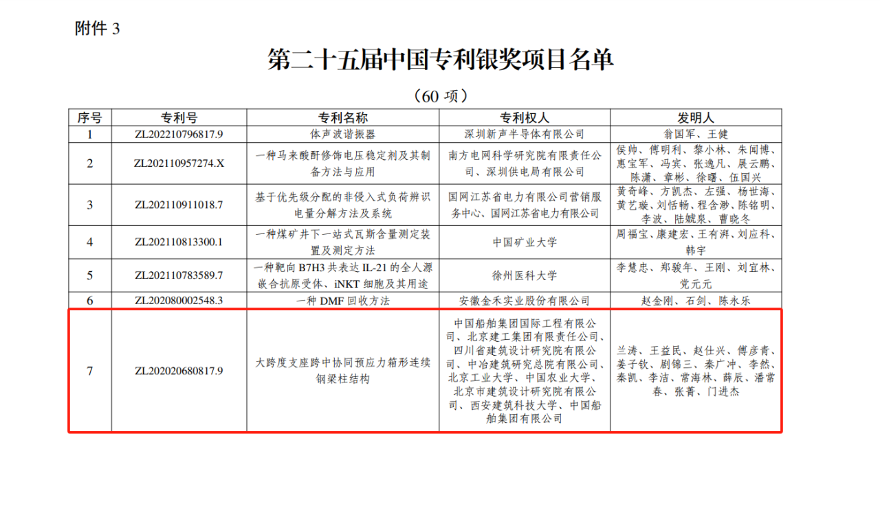 今年6月,國家知識產(chǎn)權(quán)局公布第二十五屆中國專利獎(jiǎng)授獎(jiǎng)決定,由中船集團(tuán)旗下中船國際工程主導(dǎo)申報(bào)的專利《大跨度支座跨中協(xié)同預(yù)應(yīng)力箱形連續(xù)鋼梁柱結(jié)構(gòu)》(專利號:ZL202020680817.9)榮獲本屆中國專利銀獎(jiǎng)。該獎(jiǎng)項(xiàng)由國家知識產(chǎn)權(quán)局與世界知識產(chǎn)權(quán)組織聯(lián)合設(shè)立,是我國專利領(lǐng)域的最高榮譽(yù)。今天,讓我們走進(jìn)中船國際工程鋼結(jié)構(gòu)工程設(shè)計(jì)與研發(fā)團(tuán)隊(duì),聆聽他們的奮斗故事。