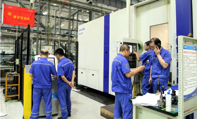 凌晨三點的中國船舶集團旗下重慶紅江聯(lián)合廠房,室外,三伏天近40℃的高溫帶來的酷熱并沒有因入夜而降下來;室內,機床轟響燈火通明,一號車間最先進的三臺臥式加工中心開足馬力全速運轉。