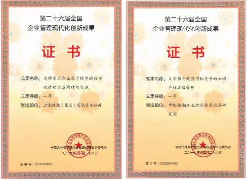 所屬江南造船(集團)有限責任公司申報的《老牌軍工企業(yè)基于模型定義的數(shù)字造船新模式構建與實施》和中國船舶工業(yè)綜合技術經濟研究院申報的《大型船企聚焦國際競爭的知識產權戰(zhàn)略管理》分獲國家級一等獎。本屆僅有30項一等獎,另有4項成果榮獲國家級二等獎,獲獎成果數(shù)量創(chuàng)船舶行業(yè)歷年最好成績。