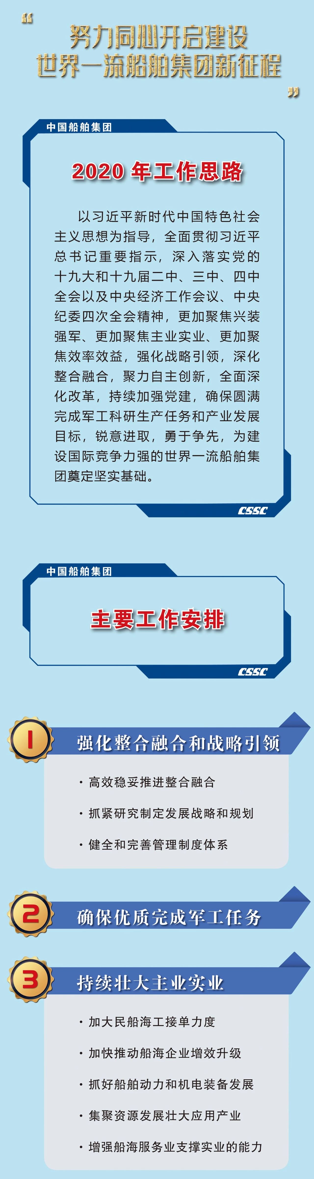 ??1月19日,在中國船舶集團有限公司2020年度工作會議上,中國船舶集團黨組書記、董事長雷凡培作了題為《以習近平總書記重要指示為統領 奮力開啟建設世界一流船舶集團新征程》的工作報告。