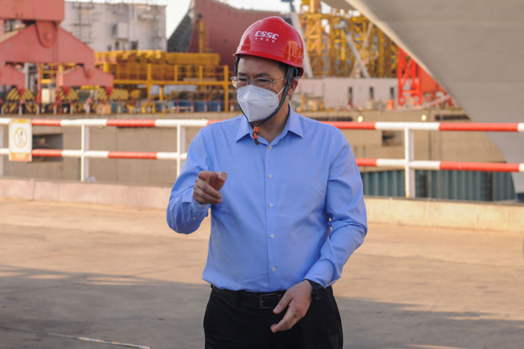 5月5日,中國船舶集團有限公司黨組副書記、總經理楊金成到集團公司旗下上海外高橋造船有限公司調研疫情防控和復工復產工作。中國船舶集團黨組成員、副總經理孫偉參加調研。