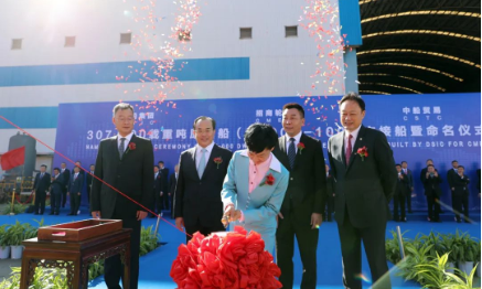 9月24日,中國船舶集團旗下大船集團聯合中船貿易為招商局集團旗下招商輪船建造的30萬噸VLCC “新伊敦”輪正式命名交付。同日,大船集團聯合中船貿易成功承接了招商輪船2艘17.5萬立方米大型LNG運輸船新造項目。中國船舶集團黨組副書記、總經理楊金成,黨組成員、副總經理孫偉,招商局集團黨委書記、董事長繆建民,黨委副書記、總經理胡建華,紀委書記、董事段湘暉,黨委委員、副總經理李百安出席儀式??娊駷樾麓?,楊金成、胡建華在儀式上致辭,段湘暉為新船砍纜。
