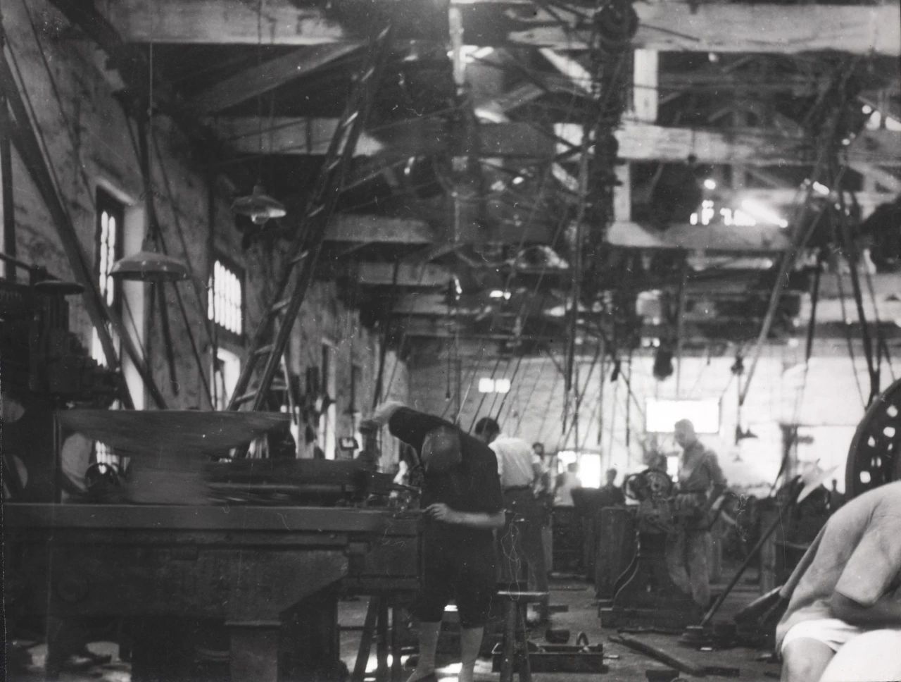 1934年武漢,上世紀30年代,武昌造船成立之初,工人們以手工作業“敲敲打打”形式開展修造船業務。修造的船只大多為100~300噸、鋼肋骨與木殼結構,僅有少量是鋼鉚接船體。建造的船只只能在長江上航行跑跑運輸。為了生存和救國,船廠還建造一些農用機械器具、槍支,以輔助民生、支援抗日。