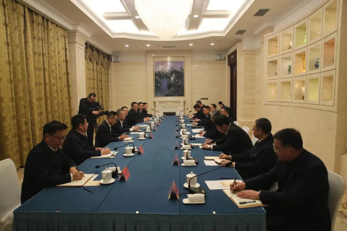 調研期間,王國強同志在大連拜訪了遼寧省委常委、大連市委書記熊茂平,大連市委副書記、市長陳紹旺,就深入學習貫徹落實習近平總書記重要指示批示精神和黨的二十屆三中全會精神,聚焦高質量發展首要任務,推動雙方在產業鏈供應鏈建設、深遠海養殖裝備、海洋綠色新能源產業等領域進一步深入合作,實現央地共贏發展進行了座談交流。
