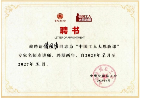 近日,中華全國(guó)總工會(huì)正式聘請(qǐng)中船集團(tuán)重慶紅江傅國(guó)濤為“中國(guó)工人大思政課”專(zhuān)家名師庫(kù)講師,聘期兩年。這一聘任旨在推動(dòng)“大思政課”建設(shè)走深走實(shí),發(fā)揮優(yōu)秀人才在思想政治教育中的示范引領(lǐng)作用。