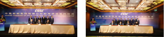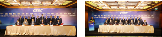 ????主要簽約項(xiàng)目包括:中國(guó)船舶集團(tuán)所屬重慶川東船舶重工有限責(zé)任公司與中遠(yuǎn)海運(yùn)(上海)有限公司1.38萬(wàn)噸不銹鋼化學(xué)品船項(xiàng)目;中國(guó)船舶集團(tuán)所屬大連船舶重工集團(tuán)有限公司與招商輪船VLCC項(xiàng)目;中國(guó)船舶集團(tuán)所屬上海外高橋造船有限公司與工銀租賃21萬(wàn)噸散貨船項(xiàng)目、外高橋造船與EPS公司20.9萬(wàn)噸雙燃料散貨船項(xiàng)目;中國(guó)船舶集團(tuán)所屬江南造船(集團(tuán))有限責(zé)任公司與太平洋氣體公司VLEC項(xiàng)目、江南造船與 SINOGAS86000立方米VLGC項(xiàng)目、江南造船與UECC公司3600車(chē)汽車(chē)滾裝船項(xiàng)目、江南造船與派格達(dá)克公司22000方乙烯船項(xiàng)目;中國(guó)船舶集團(tuán)所屬?gòu)V船國(guó)際有限公司與斯坦納公司5萬(wàn)噸甲醇雙燃料油船項(xiàng)目、廣船國(guó)際與EPS公司LNG雙燃料蘇伊士油船項(xiàng)目、中國(guó)船舶集團(tuán)所屬滬東中華造船(集團(tuán))有限公司與MOL18600立方LNG加注船項(xiàng)目;中國(guó)船舶集團(tuán)所屬武船集團(tuán)青島北海船舶重工有限責(zé)任公司與中國(guó)船舶集團(tuán)所屬中船租賃21萬(wàn)噸散貨船項(xiàng)目、中國(guó)船舶集團(tuán)所屬中船澄西船舶修造有限公司與國(guó)銀租賃85000噸散貨船項(xiàng)目、重慶川東船舶重工與重慶冠達(dá)世紀(jì)游輪650客游輪項(xiàng)目;中國(guó)船舶租賃與 Golar LNG 船舶改裝融資租賃項(xiàng)目、中國(guó)船舶租賃與SINOGAS86000立方米VLGC融資租賃項(xiàng)目;中船租賃與山東海運(yùn)21萬(wàn)噸散貨船融資租賃項(xiàng)目、中船租賃與Navig 8 成品油船聯(lián)合投資協(xié)議、中船租賃與新加坡星展銀行VLCC融資協(xié)議。