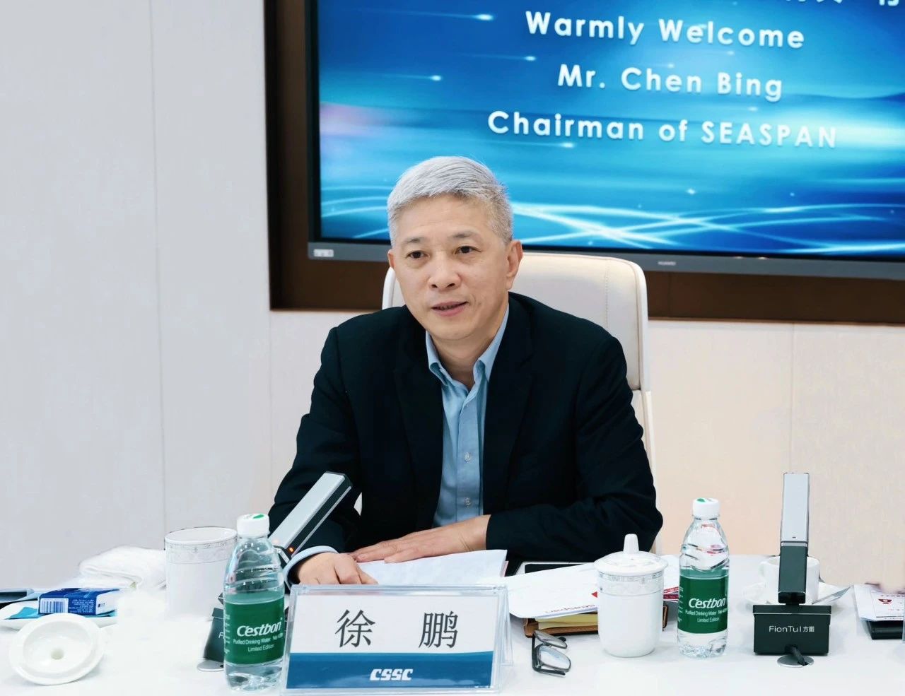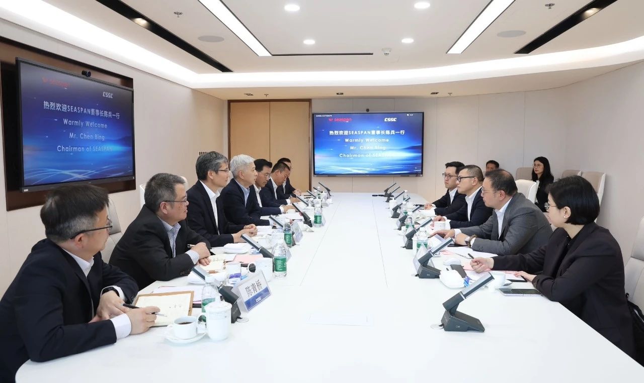 徐鵬對陳兵一行的來訪表示歡迎,并感謝Seaspan公司對中船集團的長期信任與支持。徐鵬表示,中船集團將持續提升自身綜合能力,努力為客戶提供更優質的產品和服務。Seaspan公司是全球最大的獨立集裝箱船租賃船東公司,與中船集團在長期合作中結下了深厚友誼。未來,希望雙方建立常態化溝通交流機制,在船舶建造與升級改造、國際船海市場拓展、船舶全生命周期運維、綠色能源開發等方面持續深化進一步合作,共同為行業持續健康發展作出應有貢獻。