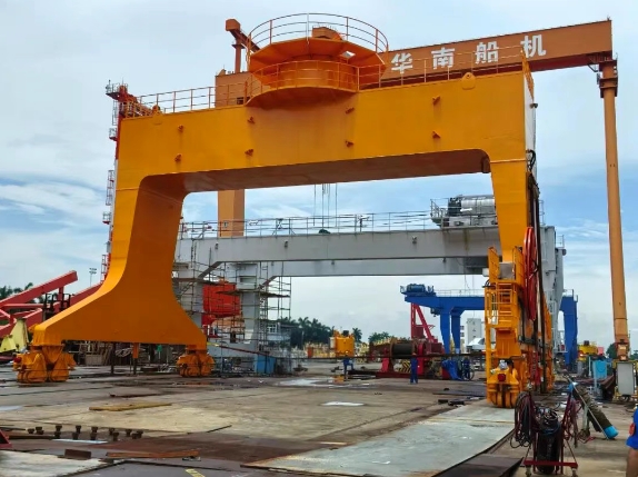 本次交付的起重機由華南船機自主研發設計,專為極端復雜的海上施工環境量身打造。一是動力強勁,65噸及55噸的起重能力可應對大型挖泥設備部件及重型工程物資的吊裝轉運;二是靈活高效,獨特的龍門行走設計賦予其寬廣覆蓋范圍,能在船舶甲板特定區域內實現精準、靈活移動,大幅提升作業效率;三是穩定可靠,針對海上作業高鹽霧、高濕度、高風浪挑戰,應用了先進的抗腐蝕工藝和結構強化設計,確保設備在嚴苛環境下持久穩定運行。