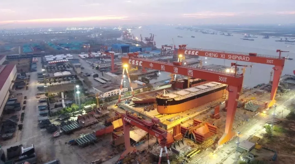 ????中國船舶集團有限公司所屬中船澄西船舶修造有限公司高效推進8.2萬噸散貨船的建造工作。該船于近日順利下水,截至下水時,該船共完成交驗系統26個,機艙完整性達91%,甲板完整性達90%,電氣完整性達92.8%。