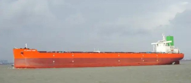 ????4月16日,中國船舶集團旗下外高橋造船為韓國長錦商船(SINOKOR)建造的21萬噸散貨船 “ATLANTIC TIGER”號簽字交付。該船是繼上月首制船成功交付后,外高橋造船向該船東交付系列船中的第二艘,再次采用首制船“云交船”的交付模式。