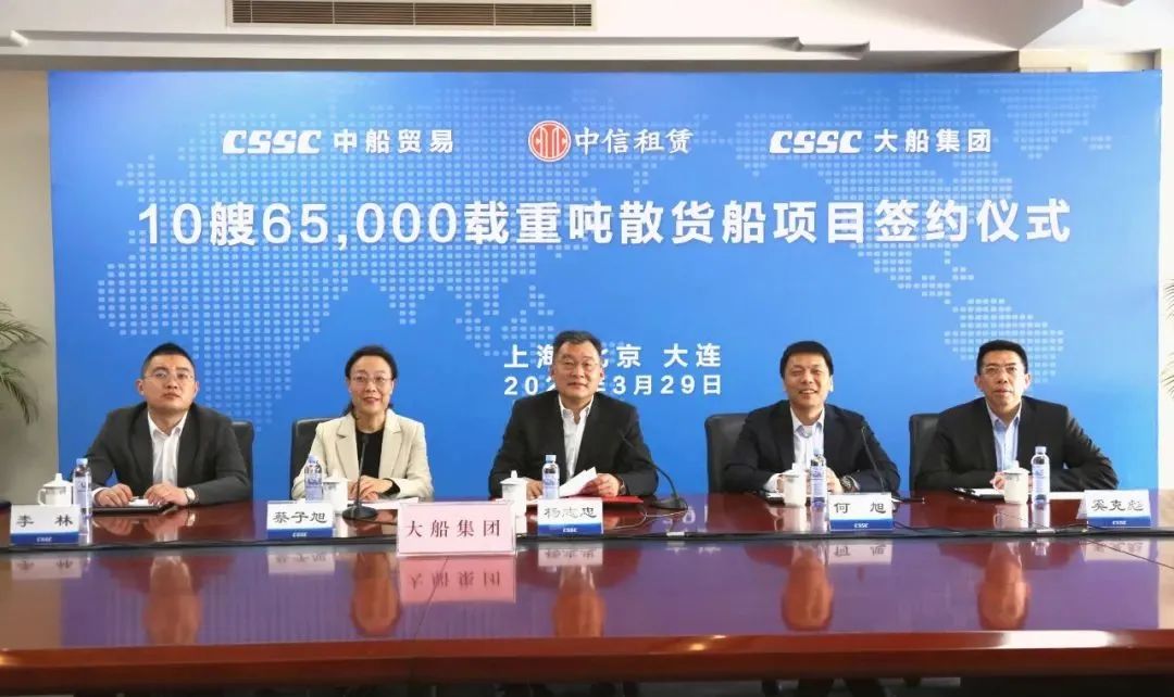 3月29日,中國船舶集團旗下中船貿(mào)易聯(lián)合大船集團與中信金融租賃有限公司以“云簽約”的形式正式簽署10艘6.5萬噸散貨船新造船合同。該批船舶完工交付后將租賃給國內(nèi)一流航運公司,服務(wù)國家資源能源運輸,主要運營國內(nèi)沿海航線及長江沿線。