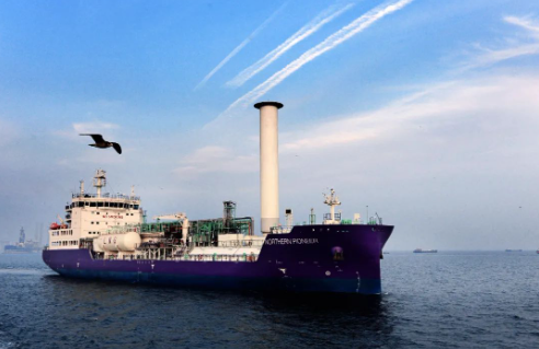 11月29日,中國(guó)船舶集團(tuán)所屬中國(guó)重工大連造船為挪威北極光公司建造的全球首制商用7500立方米液態(tài)二氧化碳運(yùn)輸船1號(hào)船交付。