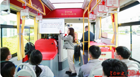 紅色巴士從浦東開發陳列館出發,講解員帶領“乘客”一路學習小陸家嘴地標背后的故事,感受國際金融中心的崛起,回顧浦東從阡陌農田到高樓林立30年的發展歷程。窗內窗外,歷史故事與魔都氣象交織,邊行車、邊參觀、邊講課、邊互動的學習形式,讓“四史”學習的過程更具代入感。本次“四史”學習不僅激發了青年的拼搏意志,增強了對城市發展及企業改革的認同感,更堅定了崗位立功的理想信念,引領青年不懈努力,為企業高質量發展匯聚奮進力量。