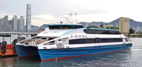 8月8日,中國香港新渡輪500客位混合動力噴水推進碳纖維高速船“新明珠6”號在廣州舉行交船儀式。該船由中國船舶集團廣州公司批量承接,是中國香港首艘碳纖維混合動力高速客船,廣州公司總承包了該項目的11艘船舶。